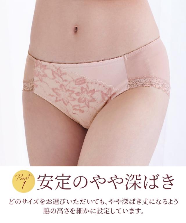 やさしい肌触りの素材が心地よいコーディネートショーツです。ウエストと足口には繊細なレースがあしらわれ、さりげない可愛らしさをプラス。脚口バックレースでアウターにひびきにくく、デイリー使いにぴったりです。どんなボトムスにも合わせやすく、快適な履き心地で一日中あなたをサポートします。 こだわりポイント・やや深ばき丈で安定したはき心地。・縦横ストレッチでヒップにぴったりフィット。・脚口バックレースでアウターにひびきにくい。