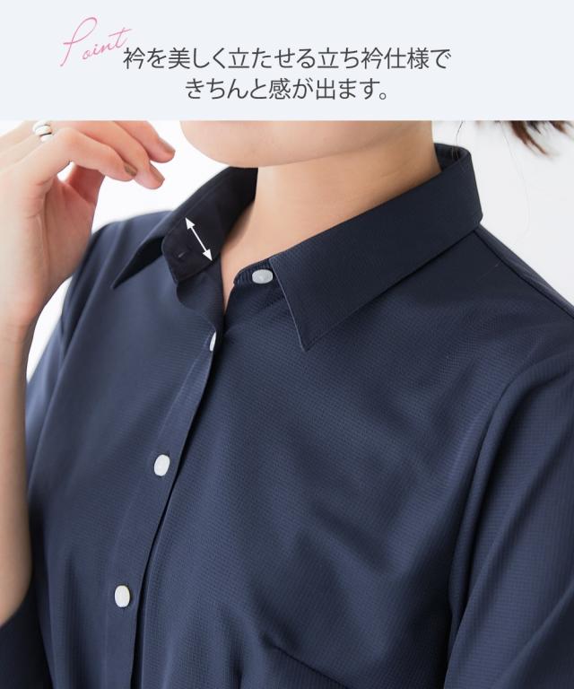 シャツ ブラウス レディース カットソー 素材 七分袖 チラ見え防止ボタン付 吸汗速乾 形態安定 春 夏 秋