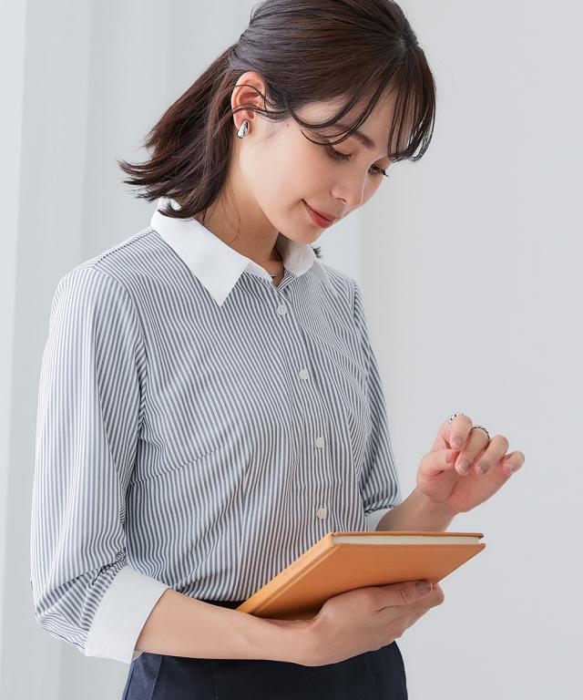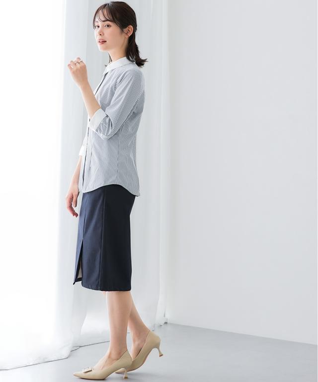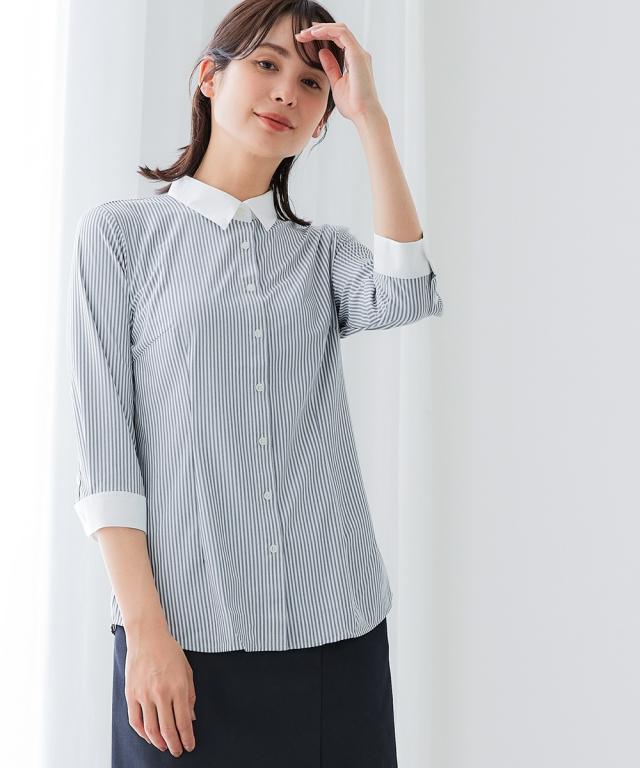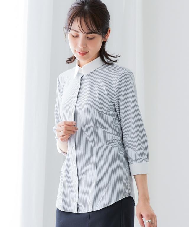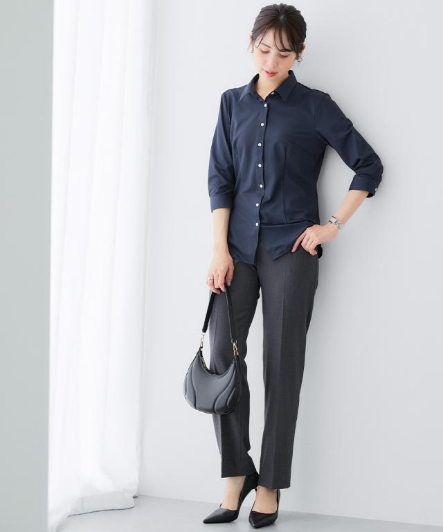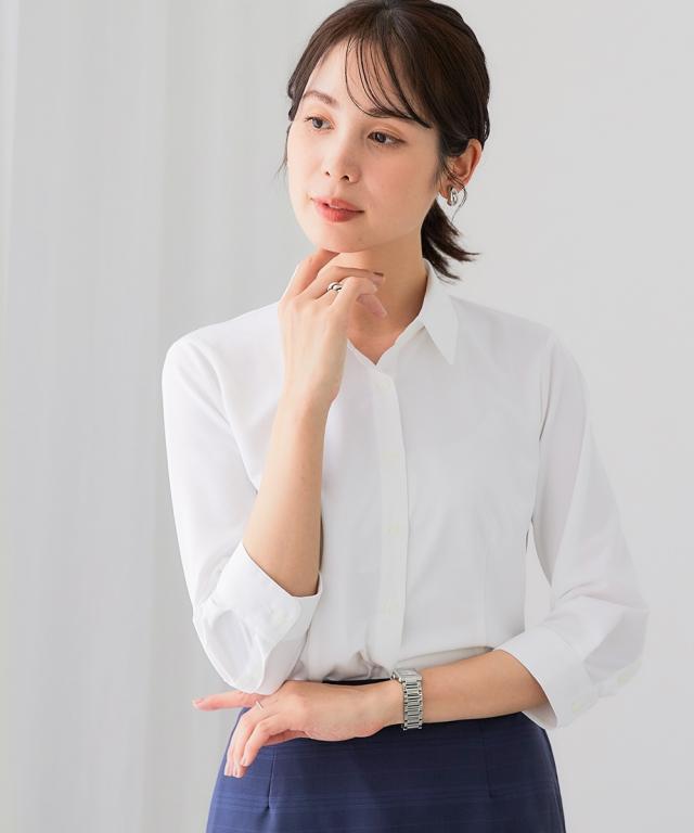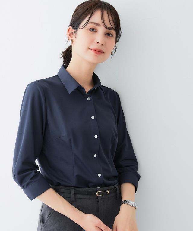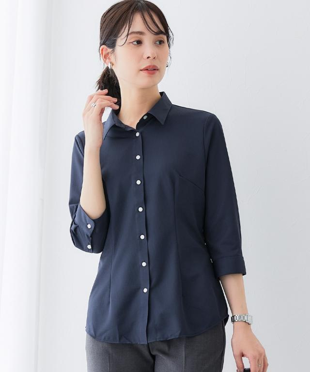 シャツ ブラウス レディース カットソー 素材 七分袖 チラ見え防止ボタン付 吸汗速乾 形態安定 春 夏 秋 | S/M/L | ニッセン nissen