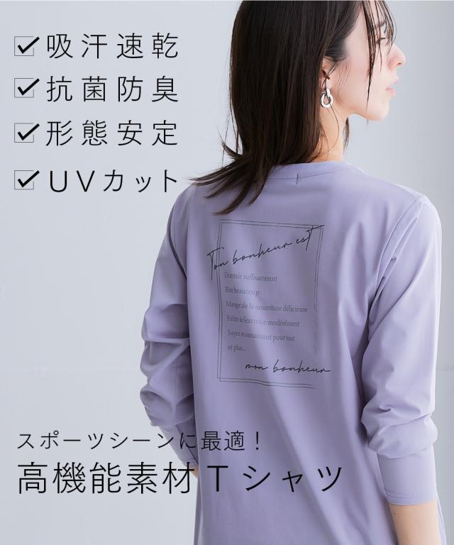 スポーツラインにオリジナルのアクティブウェアが新登場! アクティブなシーンだけでなく、おしゃれ着としても着用できます。 ■デザイン 体型カバーを実現する多機能Tシャツです。 首元は程よい開きのクルーネック仕様。 背面には一枚で様になるプリントが施されています。 丈感はお尻が隠れる長さなので気になる体型をおしゃれにカバーできます。 インナーとしてレイヤードコーデも楽しめます。 襟裏テープ付き。 ■素材 軽量で多機能な生地なので動きやすく、快適に着用できます。 ポリエステルなのでシワになりにくく、乾きやすいため普段使いにも、持ち運びにも便利。 吸汗速乾機能付きなので汗をかいてもすぐに乾くのでさらっと爽やかに着用できます。 UVカット機能付きで日焼け対策もばっちり。 抗菌防臭機能付きで気になるにおいにも対応。 形態安定加工を施しているので、洗濯後シワになりにくく、お手入れ簡単! ジムやスポーツなどのアクティブなシーンやリラックスシーン、街中でのタウンユースコーデとしてなど幅広く着用できます。 ■コーディネート シンプルなTシャツなのでデニムやスカートなどお持ちのアイテムで簡単にコーディネートできます。
