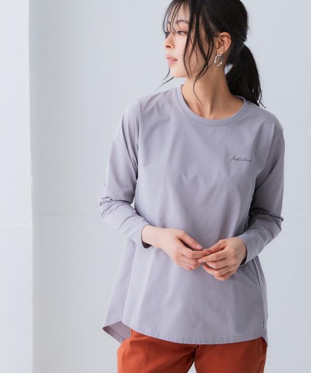 スポーツウェア トップス レディース 綿タッチ多機能ロゴ プリント チュニック 吸汗速乾 UVカット 抗菌防臭 形態安定 春 秋