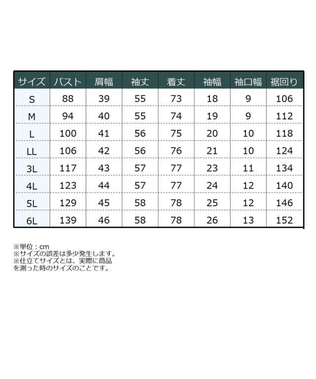 品質=[本体]ポリエステル100% [リブ部]ポリエステル97%・ポリウレタン3% 着丈前後差有 柄の出方が多少異なる場合があります。 透け感:なし 伸縮性:あり 生地の厚み:普通 光沢感:なし 裏地:なし ポケット:なし 季節:春・夏・秋 シルエット:ゆったり 原産国:中国製 備考:洗濯機OK ネット使用 ※単位:cm ※サイズの誤差は多少発生します。 ※仕立てサイズとは、実際に商品を測った時のサイズのことです。