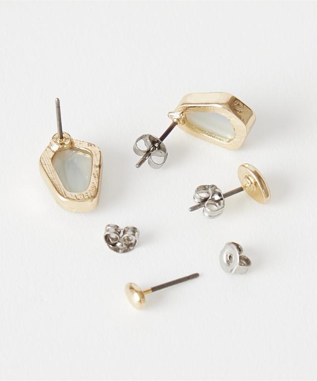 材質=【飾り部】アセチレン・亜鉛合金 【ポスト・キャッチ部】ステンレス 【サイズ】ピアス小:幅=0.3(cm),高さ=0.5(cm),厚み=0.2(cm),ピアス大:幅=1(cm),高さ=1.3(cm),厚み=0.3(cm),ポスト長さ=1.2(cm)】 ※手作りのため色の出方・サイズが多少異なる場合があります。 原産国:中国製