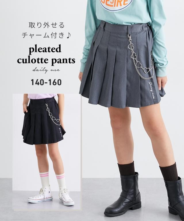 子供服 キッズ チャーム付き プリーツ キュロット パンツ 女の子 春 秋 ガールズ