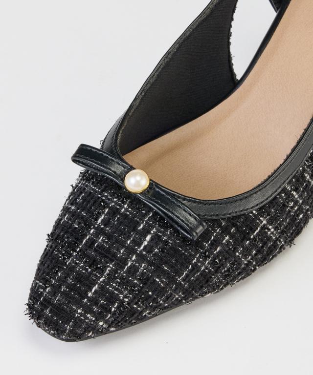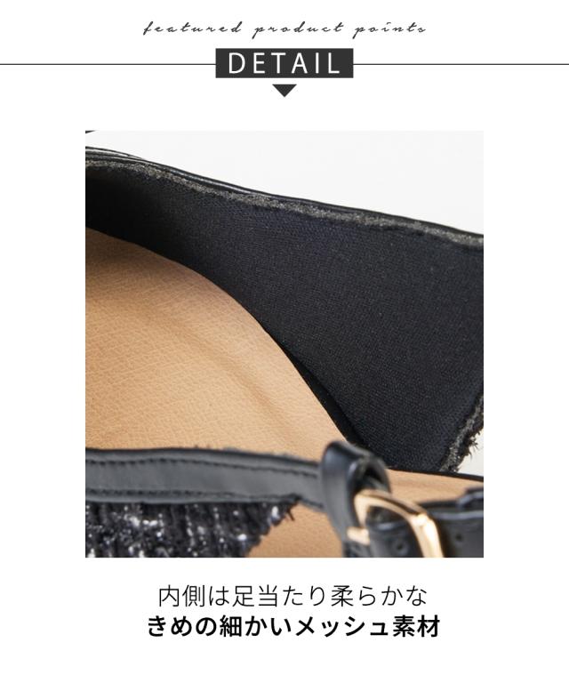 ラファーファモデル「えんどぅ」さんと「lafafa SHOES」×「ニッセン ACQUACALDA」のコラボ企画! 「大きくても可愛い靴が履きたい!おしゃれしたい!」そんなプラスサイズ女子のために誕生したlafafa SHOESとスマイルさんに向けてゆったり幅広シューズを開発してきたニッセンとのコラボ企画です。 リボンデザインが可愛いミュールデザインパンプス。高級感のあるツイード調素材と飾り付きのリボンデザインです。サイズ調整のしやすいバックストラップ仕様になっており、隠しゴムと合わせて自分のフィットするサイズ感で着用頂けます。 ■ポイント ・高級感のあるツイード調素材&パール調パーツ&リボンでフェミニンスタイル ・低反発クッションの中敷き仕様で優しい履き心地 ・屈曲性のあるソールは歩行時の足裏に馴染み歩きやすい ・内側メッシュで優しい履き心地 ・ベルト内側隠しゴムで脱ぎ履きがラク ・ベルトはサイズ調整可能 【ニッセンオリジナルの大きいサイズ規格】 本当に合う靴に出会った事はありますか ニッセンの4Eは、靴底の幅を広げ、甲や足首周りもゆったりの独自設計。 靴のサイズにお悩みのお客様へ向けて、サイズが大きくてもバランス良くきれいに見えるよう企画したオリジナ