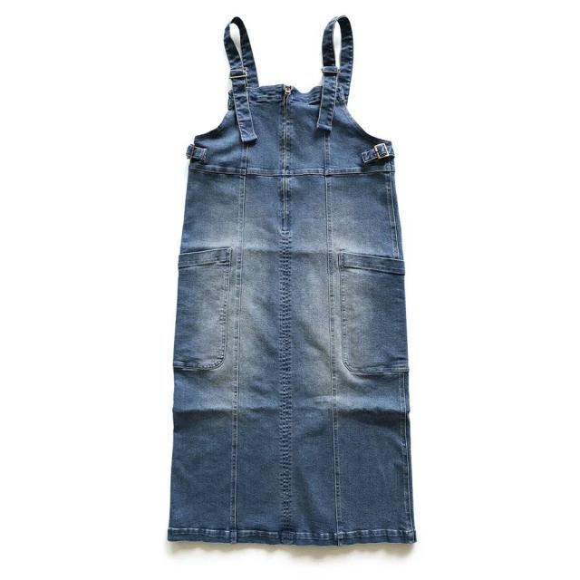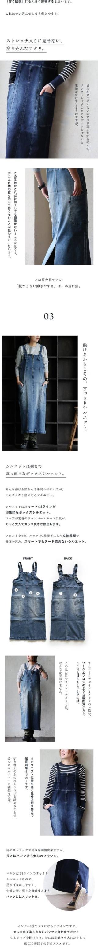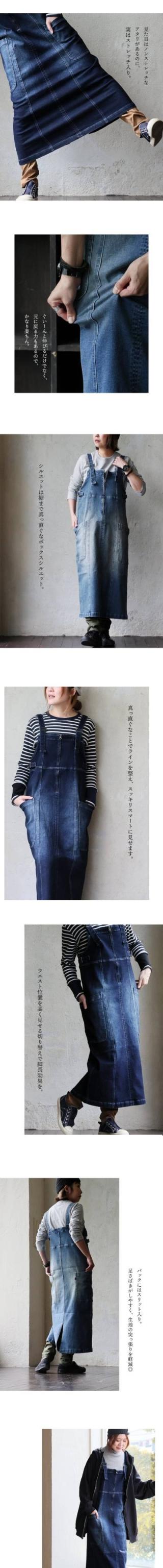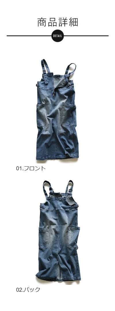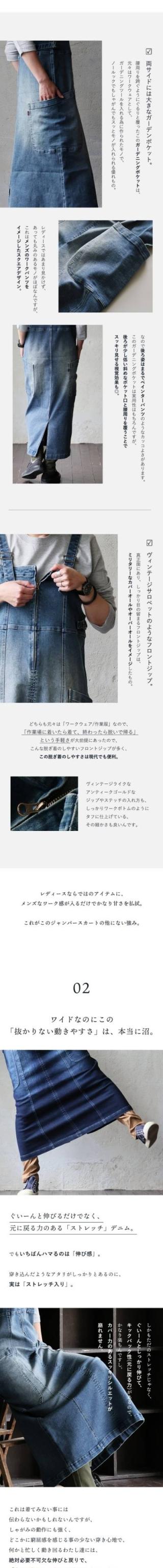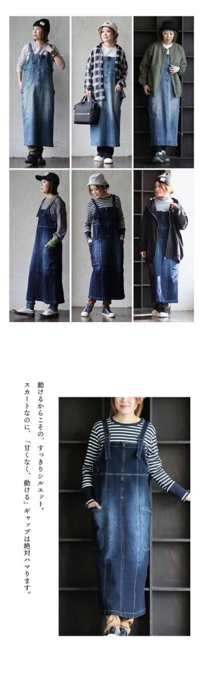 デニム ジャンスカ ジャンパー スカート マキシ丈 レディース サロペット スーパーストレッチ 伸びる しっかり 丈夫 大きいポケット スリット ゆったり 体型カバー 大きいサイズ カジュアル メンズライク パティ