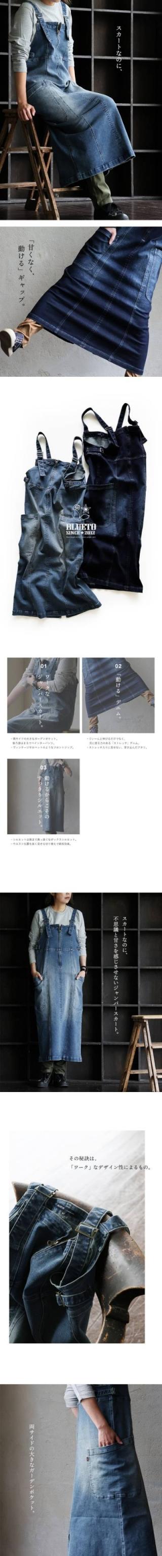 デニム ジャンスカ ジャンパー スカート マキシ丈 レディース サロペット スーパーストレッチ 伸びる しっかり 丈夫 大きいポケット スリット ゆったり 体型カバー 大きいサイズ カジュアル メンズライク パティ BLUETO ブルート