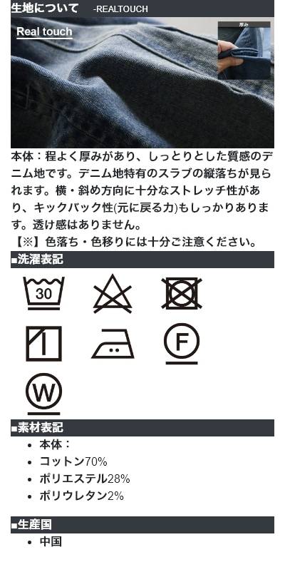 [素材]本体:コットン70% ポリエステル28% ポリウレタン2%