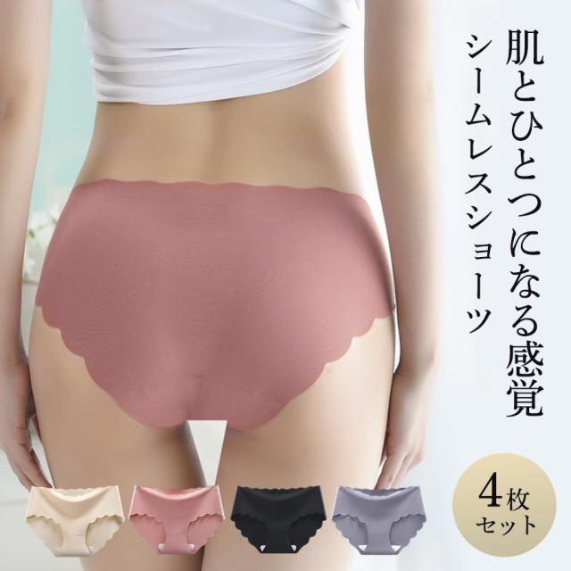 ショーツ レディース 4枚セット 深め 下着 パンツ お腹 締め付けない 食い込まない 柔らか 通気性 伸縮性 無縫製 縫い目なし