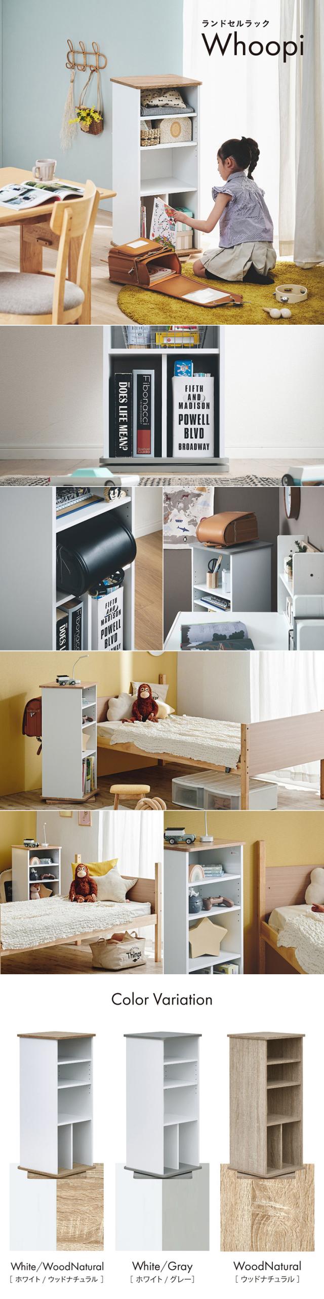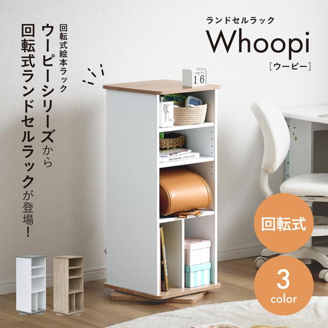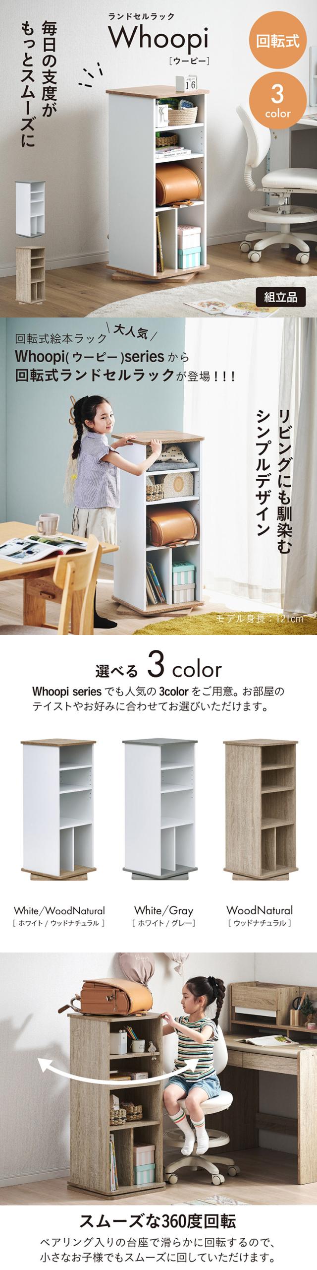 ランドセルラック 回転式 Whoopi(ウーピー) 3色対応 キッズ収納 ロータイプ 可動棚 おしゃれ シンプル ホワイトボード付き ディスプレイスペース 省スペース 安全設計 オープンラック 通学グッズ収納 フック付き 子供部屋