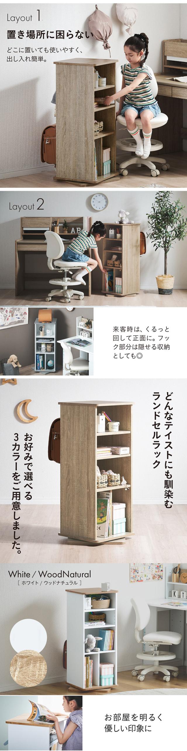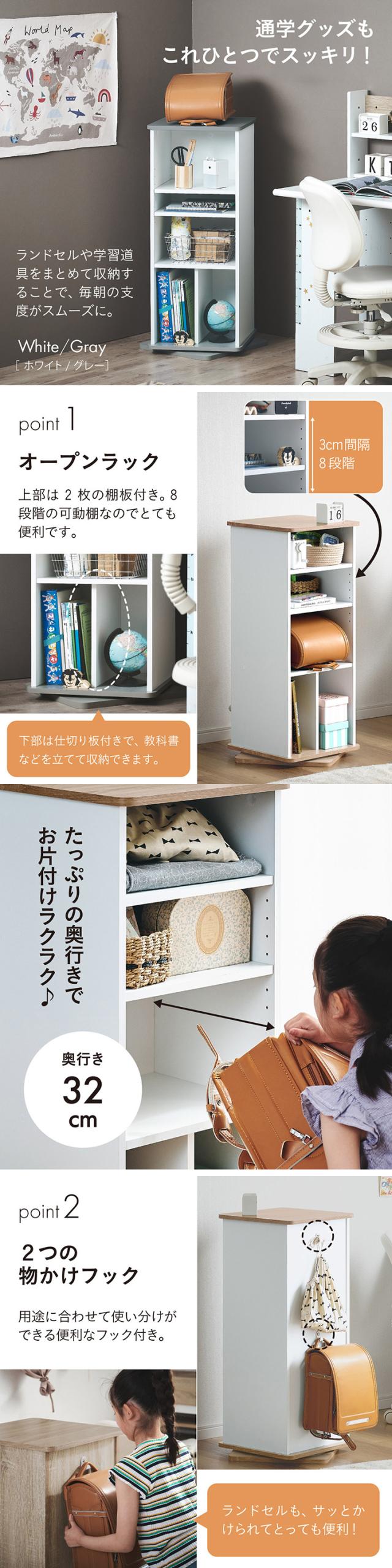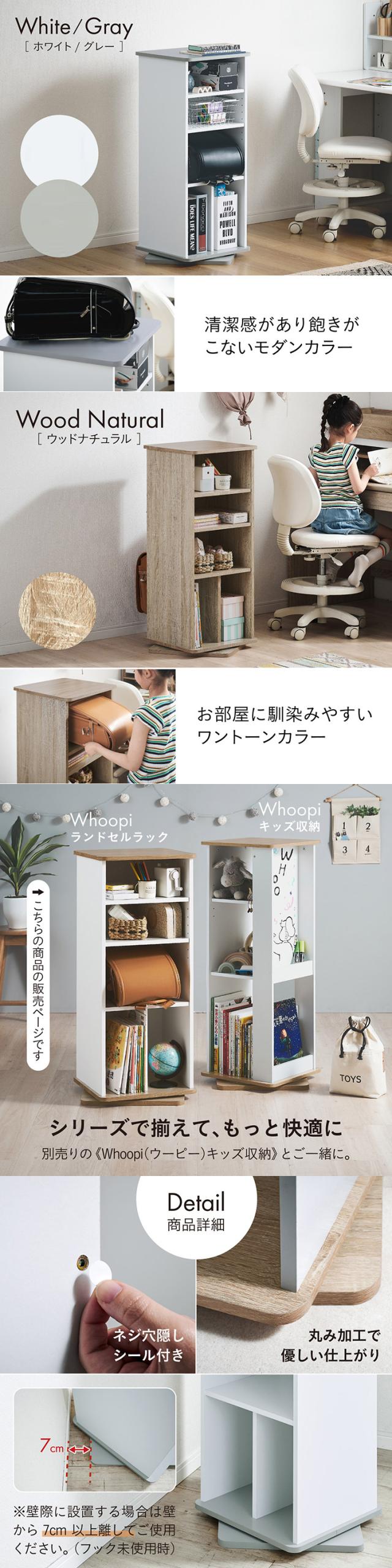 ランドセルラック 回転式 Whoopi(ウーピー) 3色対応 キッズ収納 ロータイプ 可動棚 おしゃれ シンプル ホワイトボード付き ディスプレイスペース 省スペース 安全設計 オープンラック 通学グッズ収納 フック付き 子供部屋