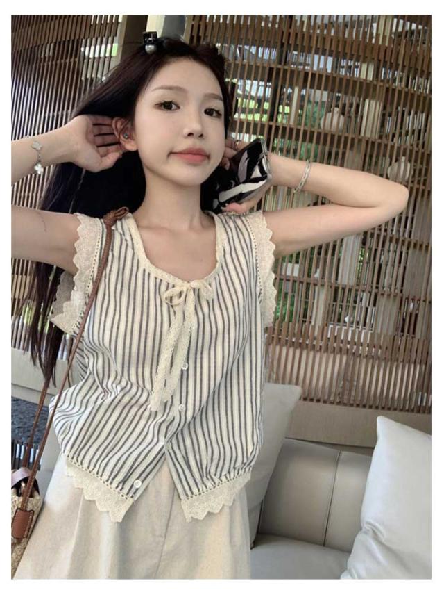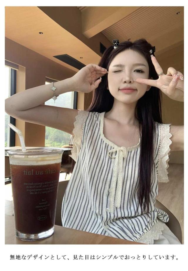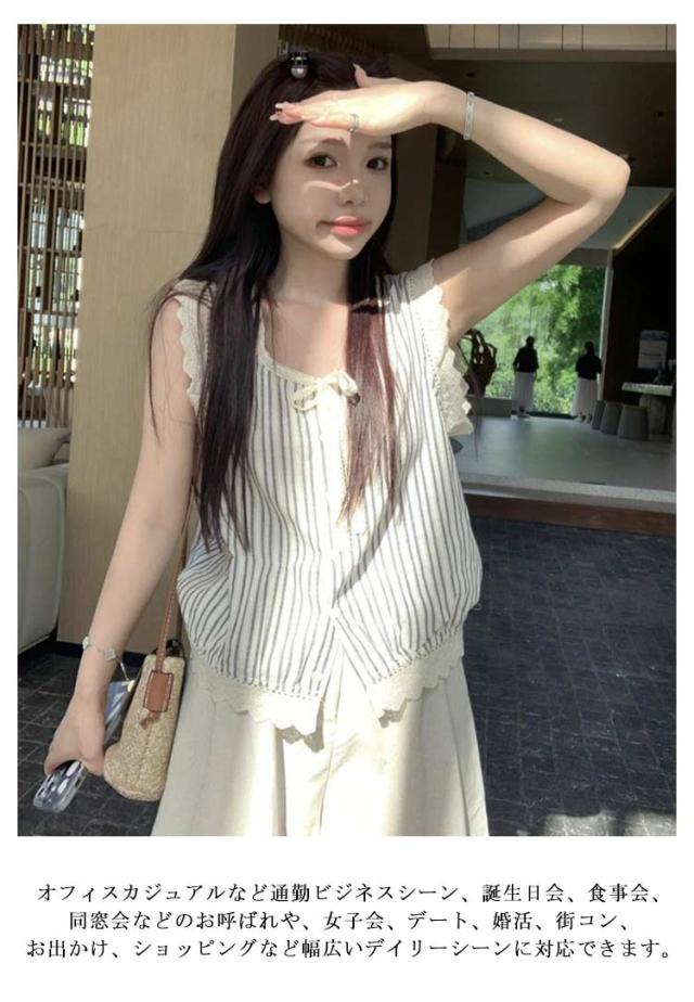 シャツ レディース 夏 ノースリーブ トップス ブラウス レース ストライプ タンクトップ プルーオーバー ゆったり シャツ おしゃれ かわいい 無地 シンプル きれいめ 夏用 薄手 オフィス 20代 30代 40代 フォーマル 仕事 通勤 OL