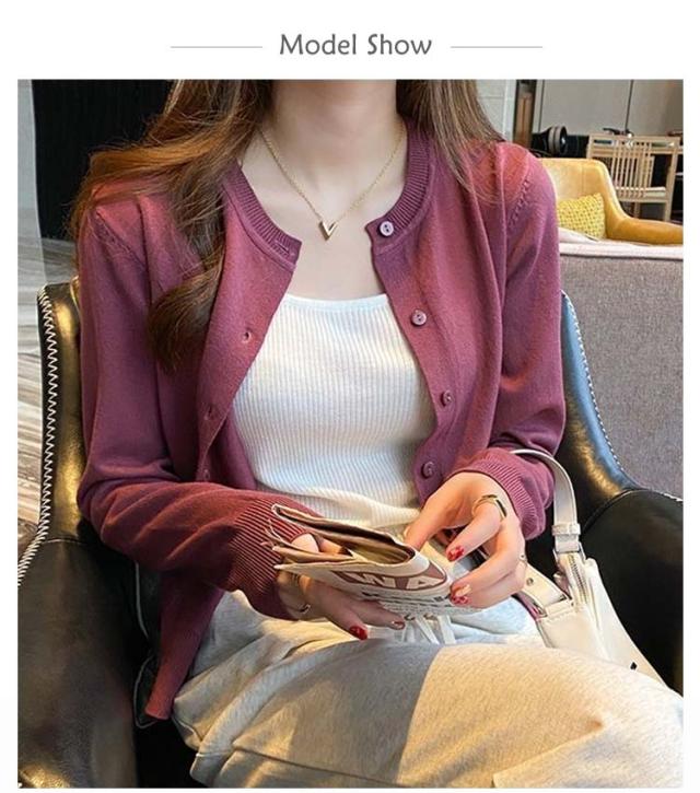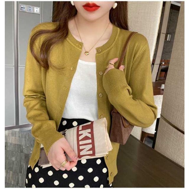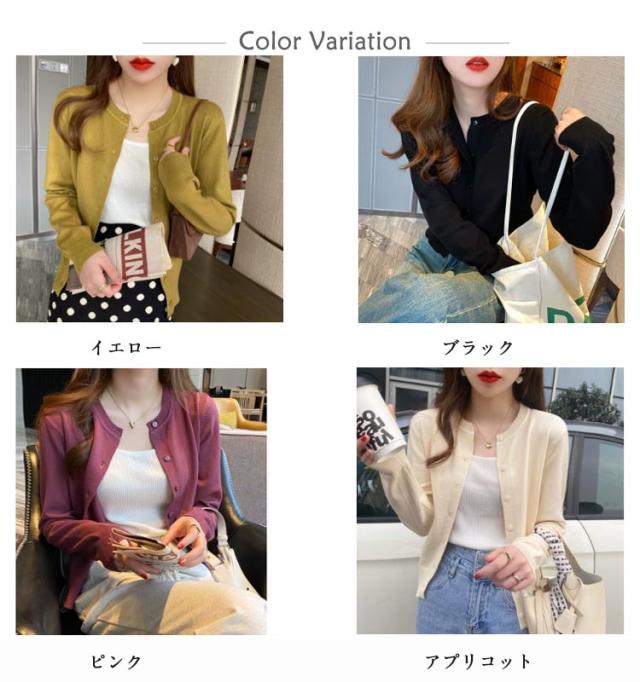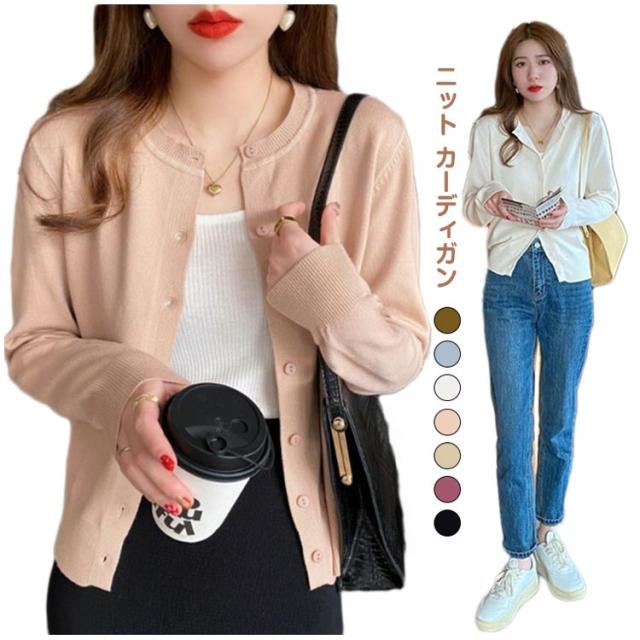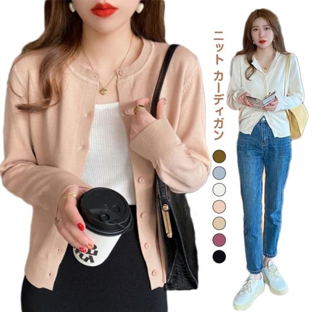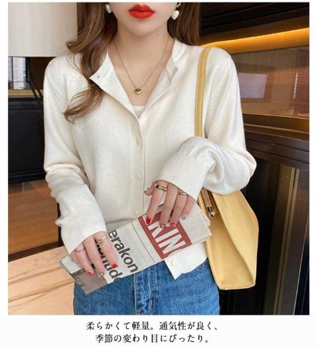 ニット カーディガン レディース 春秋 アウター ニットカーデ ボレロ 長袖 薄手 羽織り 無地 シンプル ラウンドネック ニット セーター カジュアル オフィス 通勤 通学