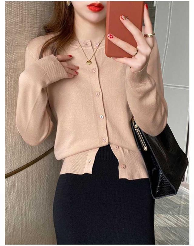 | ニット カーディガン シンプルなラウンドネックデザイン 首元をきれいに見せる丸首仕様。インナーを選ばず、カジュアルにもオフィスにも合わせやすい。 薄手ニットで春秋に最適 柔らかくて軽量。通気性が良く、季節の変わり目にぴったり。 着痩せ効果のあるシルエット 程よいフィット感で体のラインを美しく見せ、スタイルアップ効果を演出。 | |