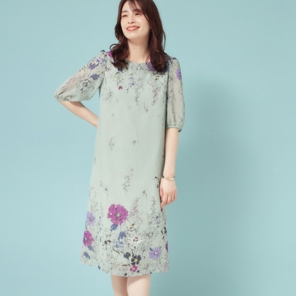 【コスモス/SS〜Lサイズ展開】フラワーパネル柄ワンピース