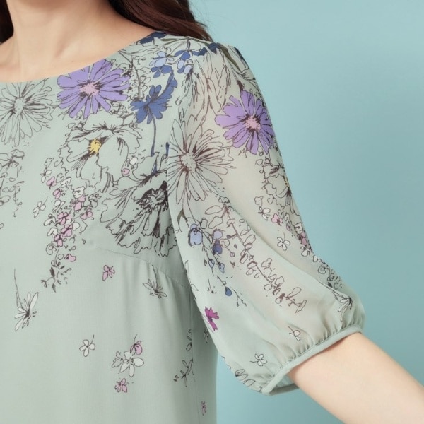 程よい透け感と落ち感を併せ持ったシフォン素材なので、暑いこの時期にも体に張り付きにくいサラッとした肌触りが特徴です。