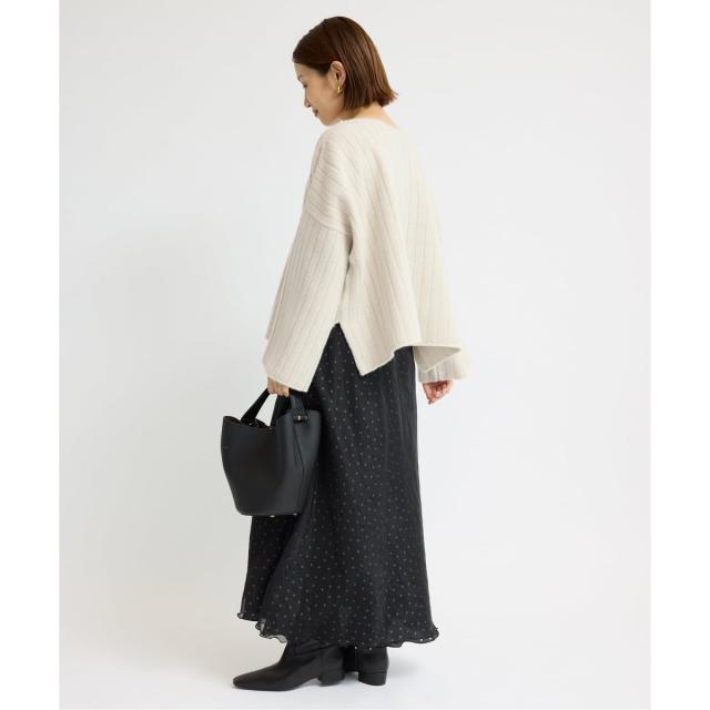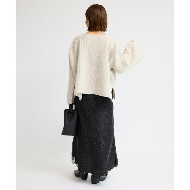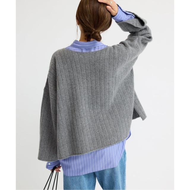 カシミヤ9%混の紡毛をミドルゲージでワイドリブに編んでお造りしております。
