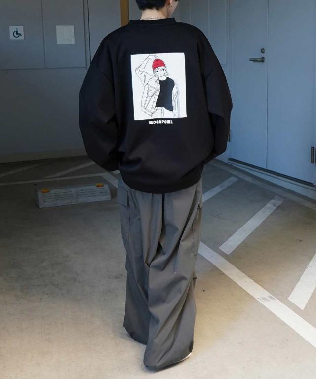 ILL’S 【RED CAP GIRL】 ドレープ バックプリント プルオーバースウェット