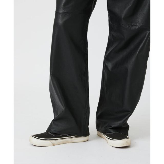 細身で重厚感のあるレザーパンツが多い中、 やや太めのストレートシルエットを採用しました。