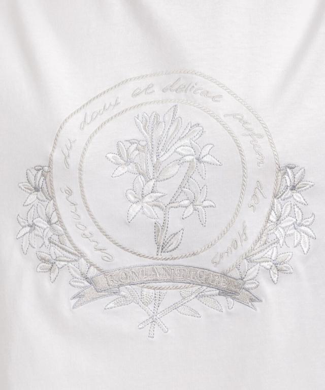 【繊細な刺繍が映える、フラワーエンブレムTシャツ】