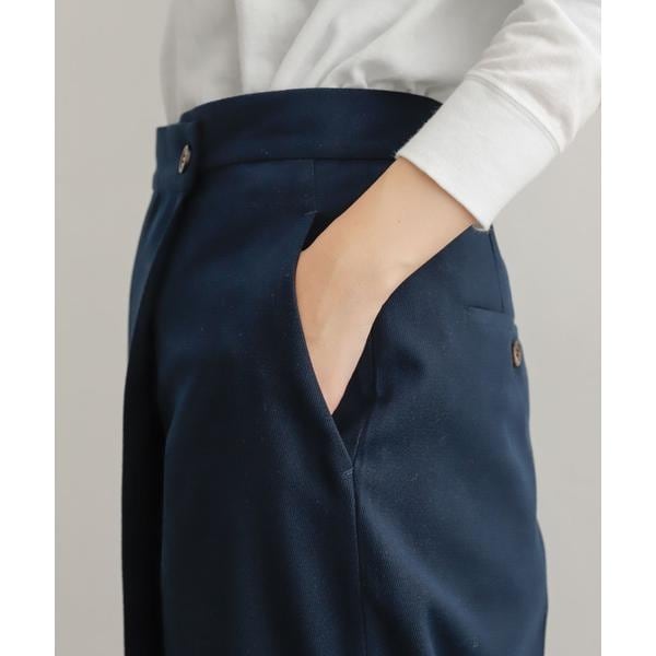 スッキリとしたシルエットながら前ウエストにデザインがあるため、シンプルなトップスを合わせるだけでこなれ感を演出。