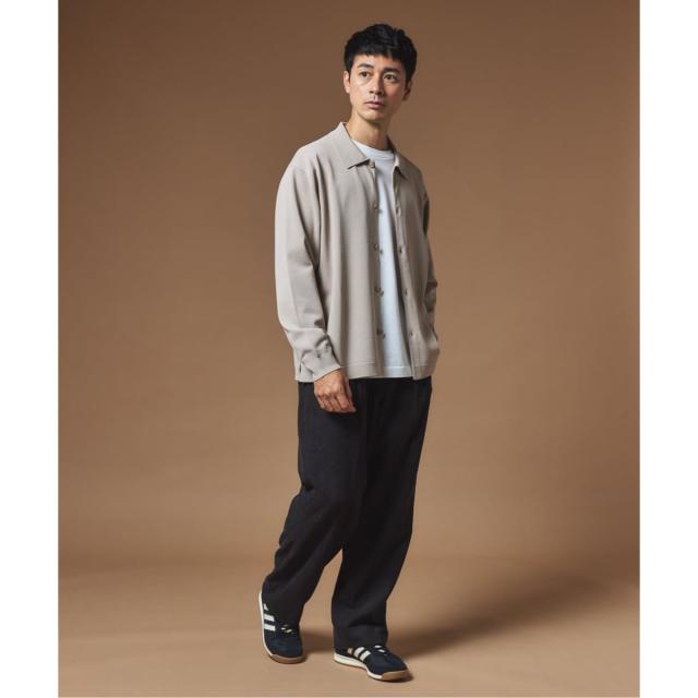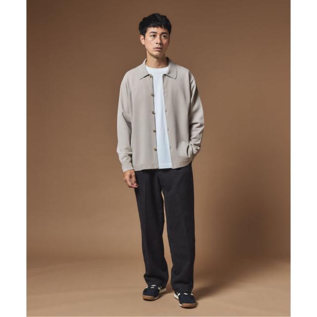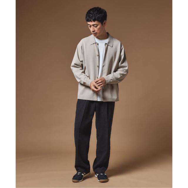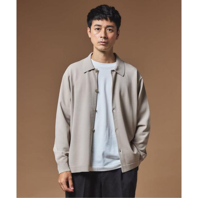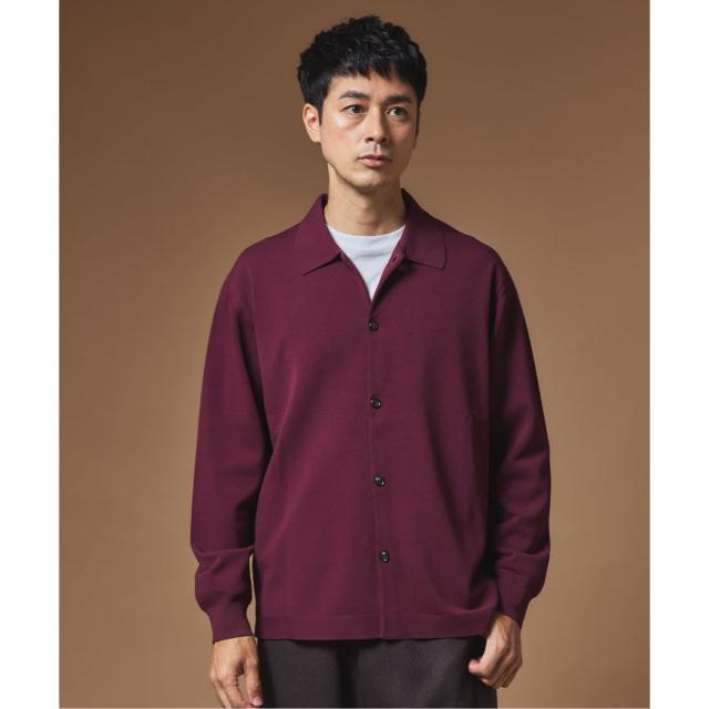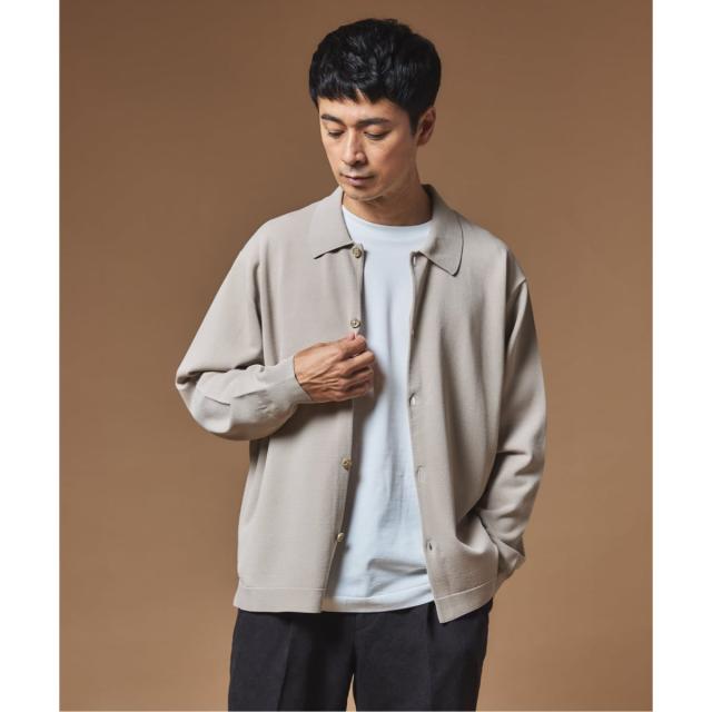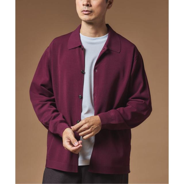 ・ポロカーディガン型で着丈が短めのバランスが特徴的なデザイン。