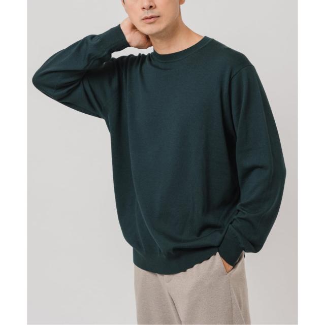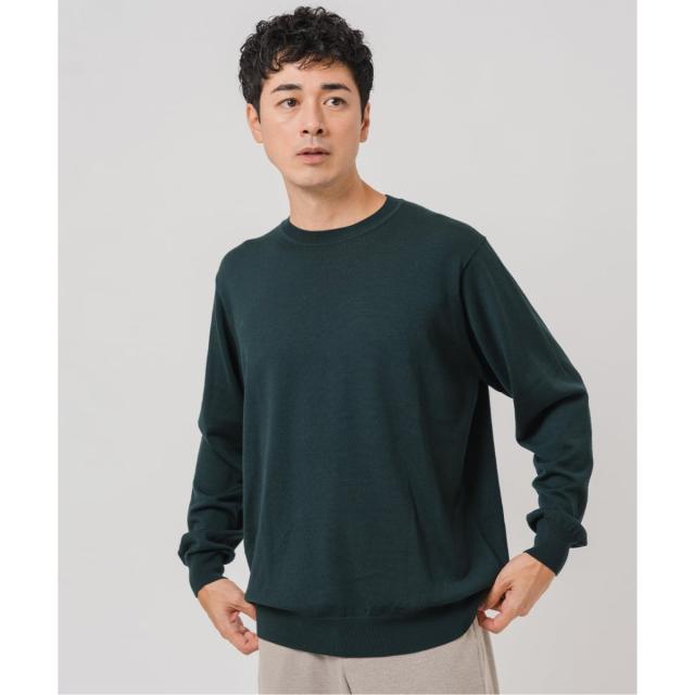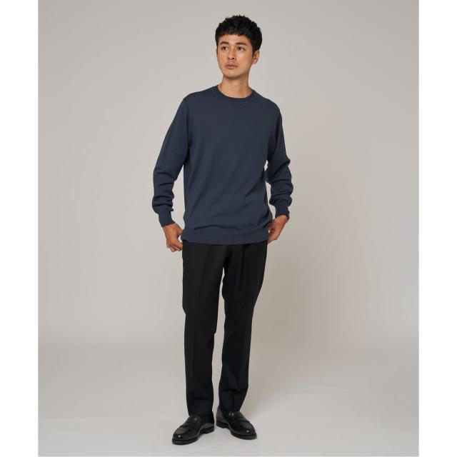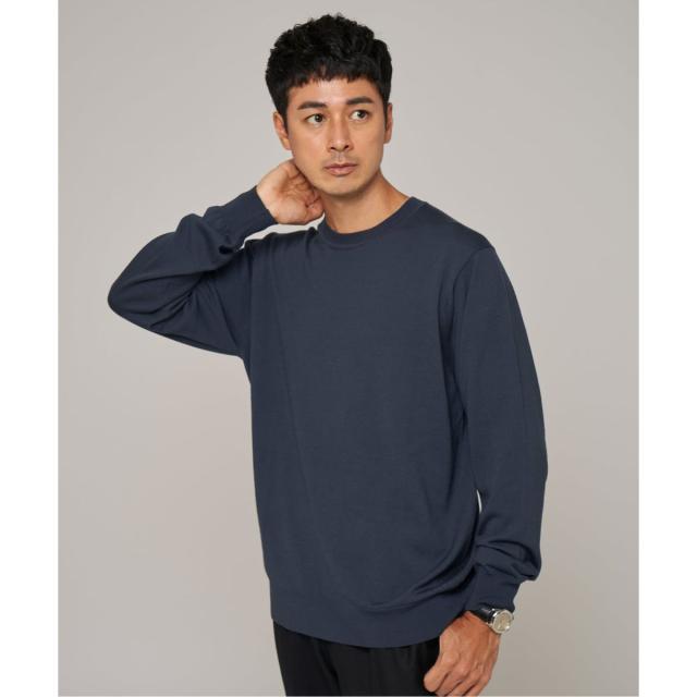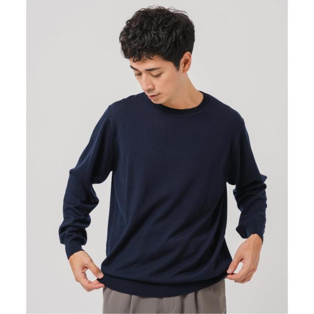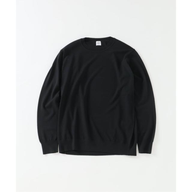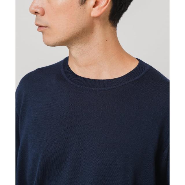 ・14ゲージの天竺編みで仕上げた、上質な細番手ウール素材のクルーネックニット。