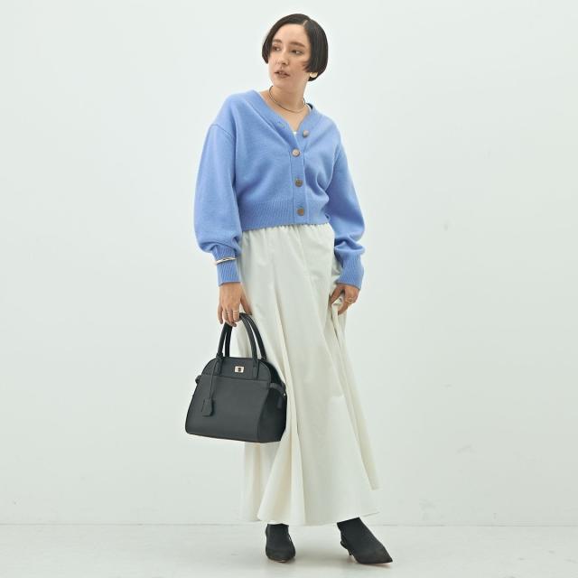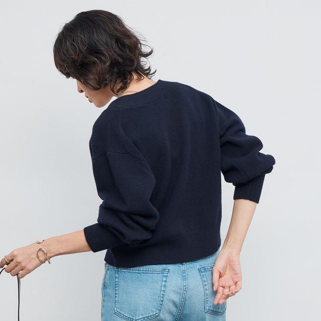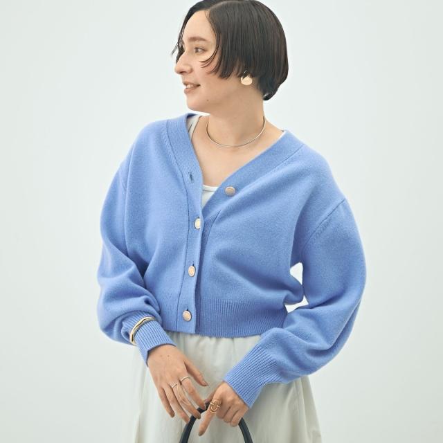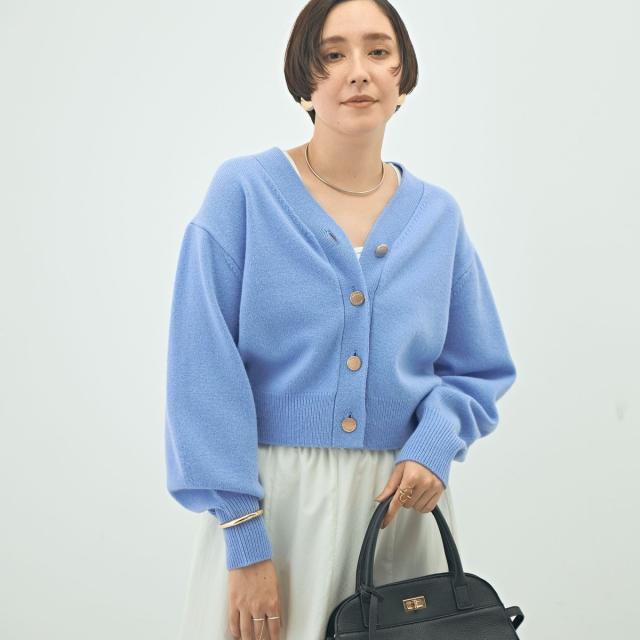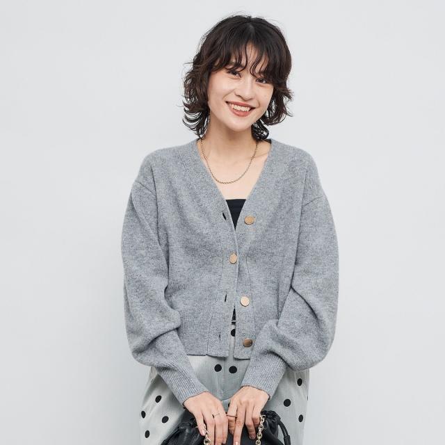 ・丈が短めのパフスリーブVカーディガン
