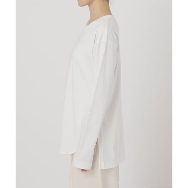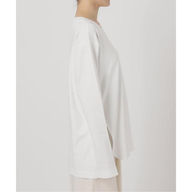 ベーシックさの中にも襟ぐりは横に広く取りニュアンスが出るように工夫。袖は長く細めで、袖口にスリットを入れてセンシュアルな雰囲気をプラス。