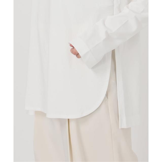 上からニットやアウターをレイヤードしたときにサマになるように、フロントはラウンドヘムで後ろはスクエアヘムにしてリズムのある表情に。