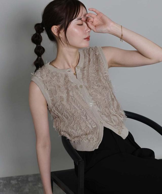 立体的なフリンジデザインが魅力のニットフリンジベスト