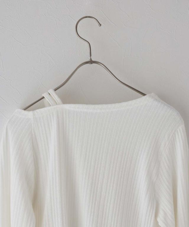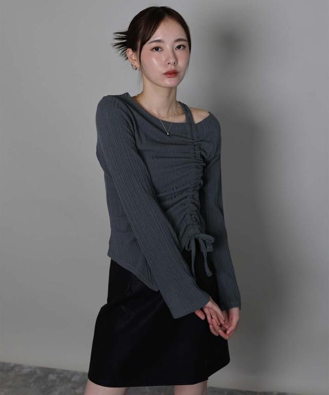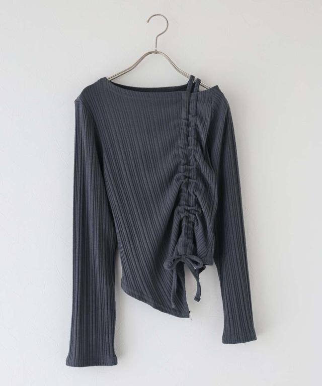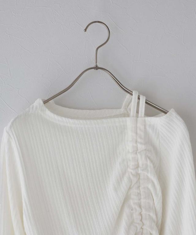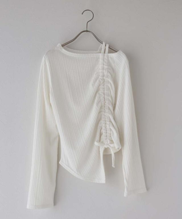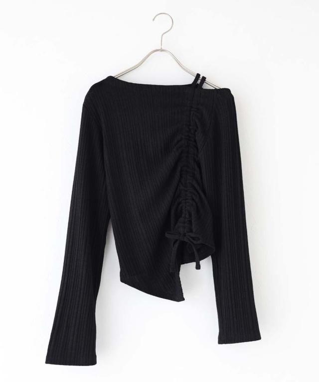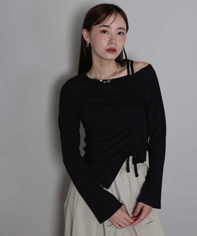 ワンオフショルダーギャザーリボンTシャツ