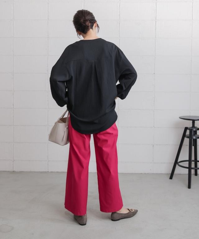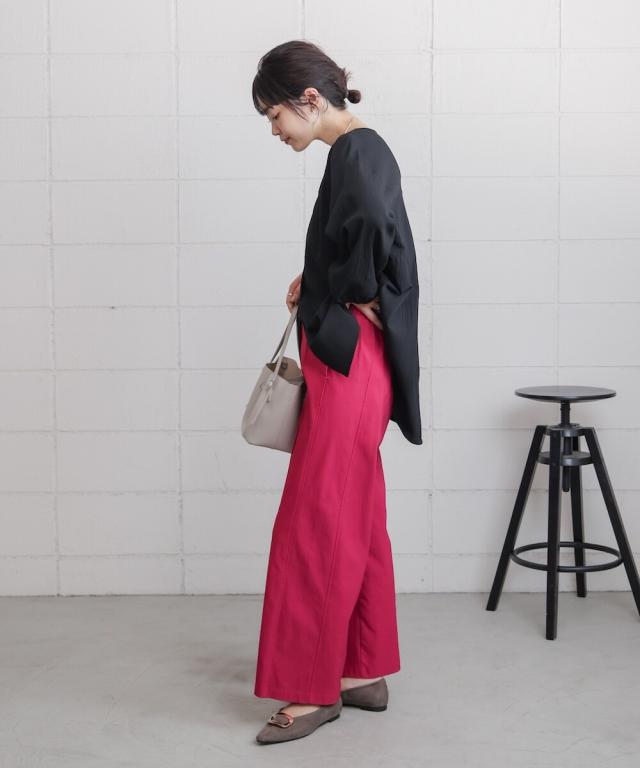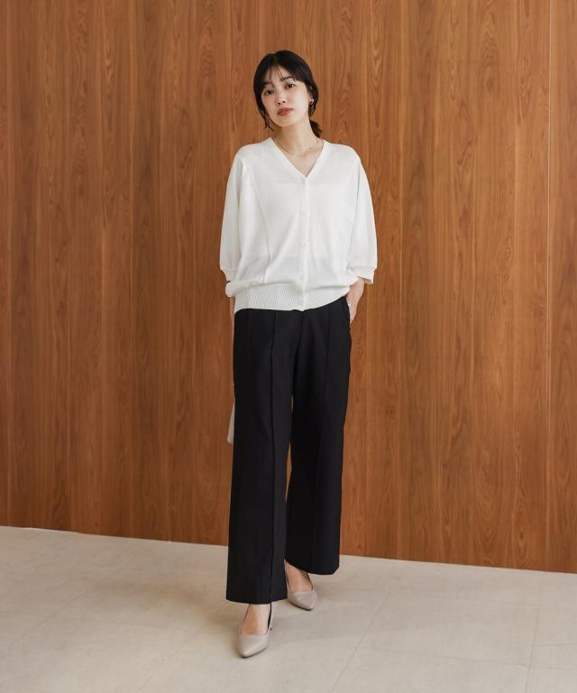 マットすぎない素材感はオフィスシーンからデイリールックまで幅広くご使用いただけます。ストレッチ性抜群できれい見えながらもノンストレスな着心地。