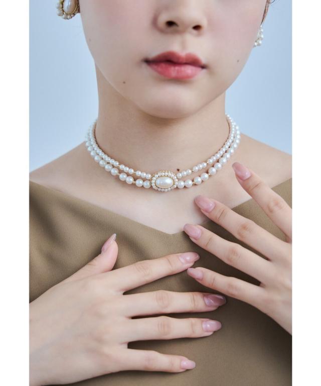 niana ニアナ 首元に沿う2連パールのチョーカーネックレス。