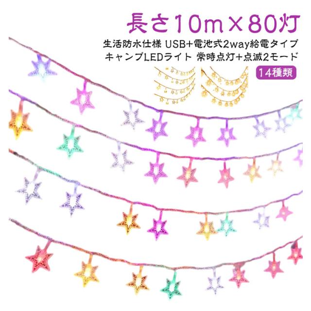 【10m80灯 USB+電池式2way】 ガーランドライト キャンプライト アウトドア ライト キャンプ イルミネーション 屋外 防水 室内用 ソロキャンプ ledデコレーションライト キャンプ イルミネーションライト ランタン ギア テント