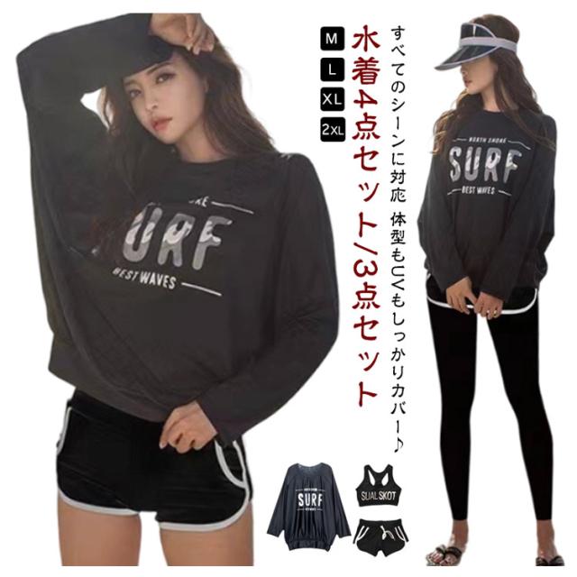 水着 レディース 体型カバー ラッシュガード セット フィットネス水着 4点セット セパレート 水着レディース ママ水着 速乾 日焼け防止 セットアップ おしゃれ かわいい サーフ ビキニ ショートパンツ ロングパンツ UVカット M L XL
