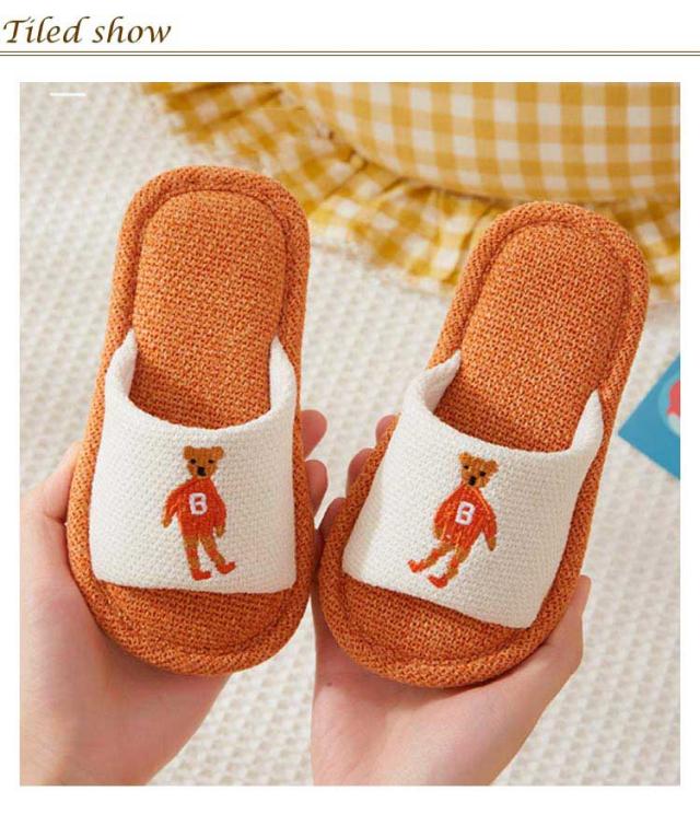スリッパ キッズ ルームシューズ 子供 綿麻スリッパ こども くま 女の子 男の子 室内 洗える 子ども スリッパ かわいい おしゃれ 疲れない 室内履き 15cm 16cm 17cm 18cm 19cm 20cm 21cm お揃い 消音 滑り止め 未就学 小学生 プレゼント 春 夏 秋用
