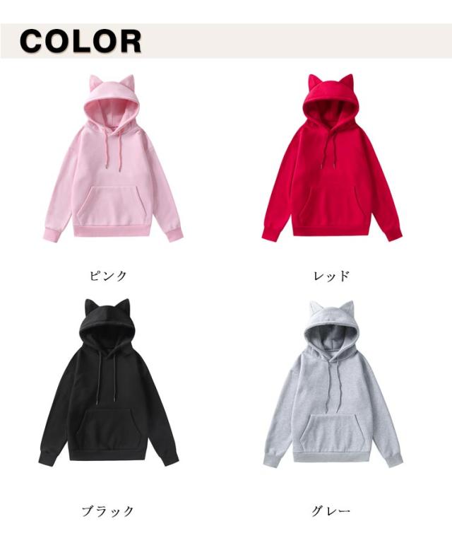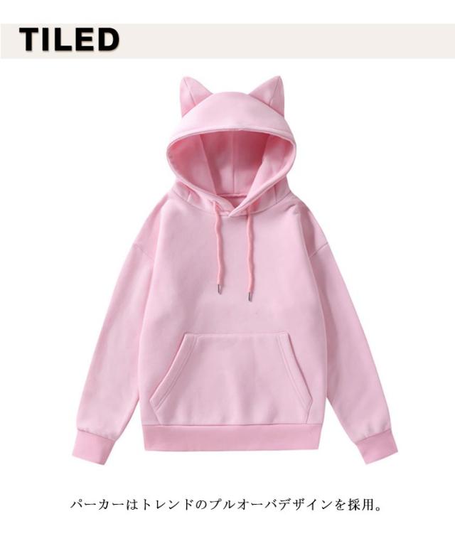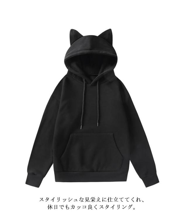 長袖 レディース 猫耳付き ゆったり 無地 トップス 春秋 カジュアル トレーナー フード付き フーディー パーカー 猫耳付き 大きいサイズ 体型カバー 大人 可愛い