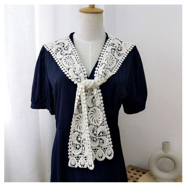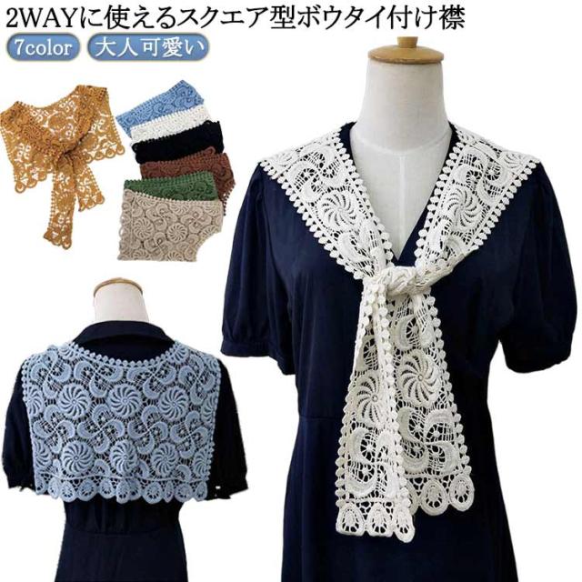 付け襟 つけ襟 レース 付け衿 大人可愛い フェイクカラー つけ衿 セーラー風付け襟 花柄レース 付け襟 ボウタイ 7color 肩掛け 重ね着風 レイヤード スクエア型 春夏秋冬新作 個性的 シンプル