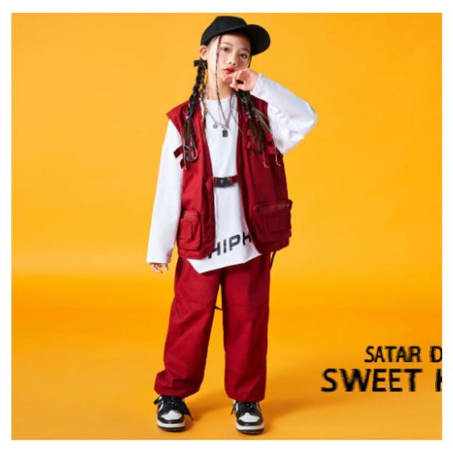 キッズ 子供 ベースボールシャツ 半袖シャツ ヒップホップ ダンスウェア 韓国 ダンス衣装 カーゴパンツ 長ズボン 赤 白 セットアップ 男の子 レッド ジョガーパンツ 女の子 演出服 練習着 ダンス服 K-POP HIPHOP キッズ オレンジ 派手 キッズダンス衣装
