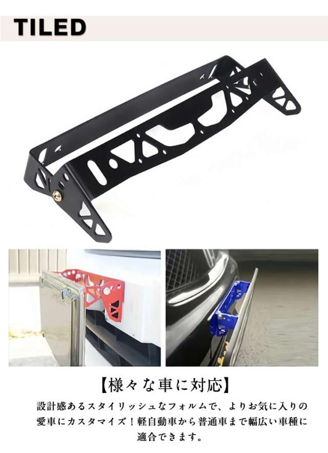 | 【角度調整可能】ナンバープレートステーはナンバープレートの場所や角度に調整可能。自動車や軽自動車から本格的なカスタムカーまで幅広く適応でき、簡単に取り付けられます。 【軽量アルミ素材】アルミ合金を使用しているナンバープレートステー角度調整フレームなので、耐久性も十分に備わっています。110gだけの重量で、このプレートは軽くて取り付け作業がしやすい、作業負担を軽くすることもできます。 【美しい外観】磨き上げられた表面とすっきりとした仕上がり。 繊細な質感、車の見た目を引き立てます。品質な錆びにくい素材で、雨のドライブでも安心! 【様々な車に対応】設計感あるスタイリッシュなフォルムで、よりお気に入りの愛車にカスタマイズ!軽自動車から普通車まで幅広い車種に適合できます。 【取り付けが簡単】ネジボルト付き、ドライバー一本だけで取り付けます、ネジを締めさえすれば、車の前後にしっかりと取り付けることができます。 | |