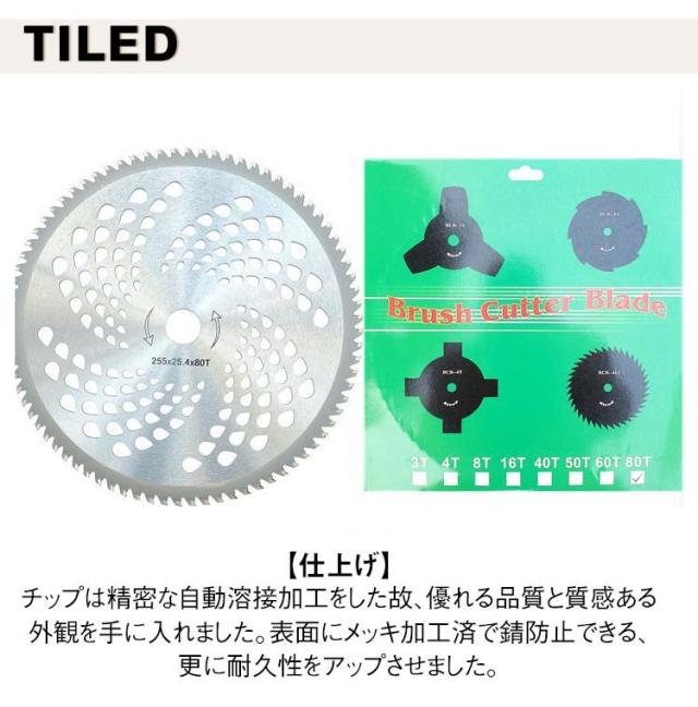 | 草刈り機用交換チップソー 刃数40P/60P/80P 5枚セット 【高品質素材】替え刃の本体は高品質炭素鋼、チップは耐摩耗、耐衝撃用のタングステンカーバイトを採用しております。丈夫で長持ち、小石などの硬い物でも耐えられ、切れ味を長時間維持できます。 【サイズ】外径255mm×内径25.4mm×刃厚1.25mm 【場合】雑草・竹・笹・雑木が良く切れる。 【特徴】強力斜め埋め込みのため耐久性抜群! 刃先全面研磨により切れ味抜群 【仕上げ】チップは精密な自動溶接加工をした故、優れる品質と質感ある外観を手に入れました。表面にメッキ加工済で錆防止できる、更に耐久性をアップさせました。 | |