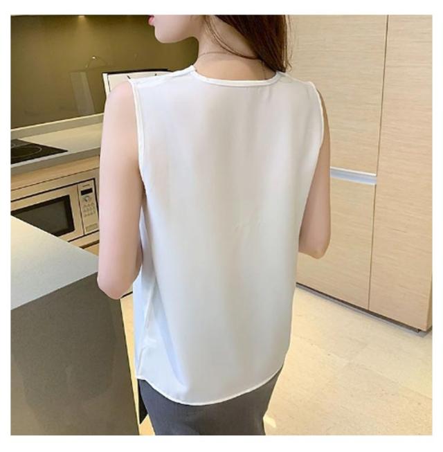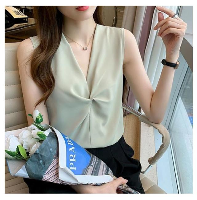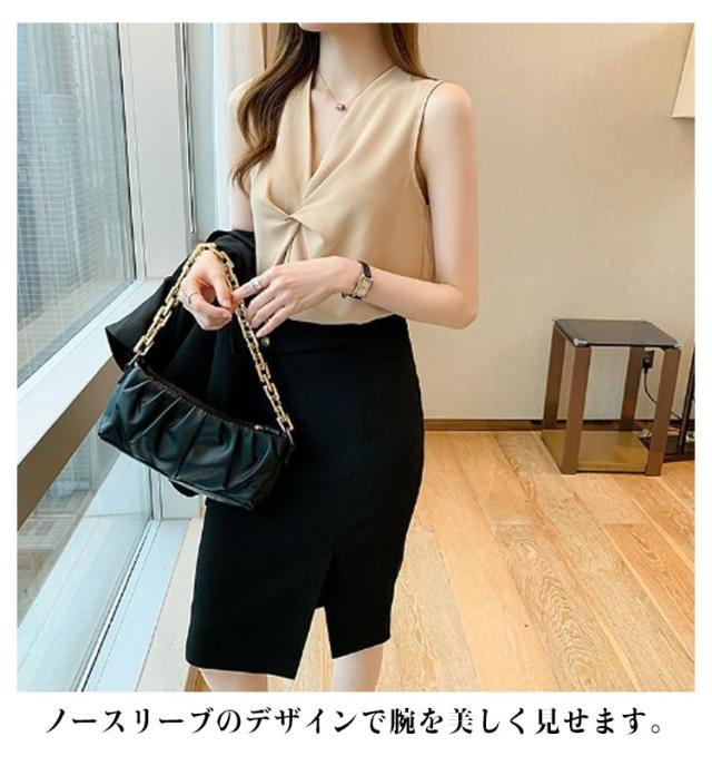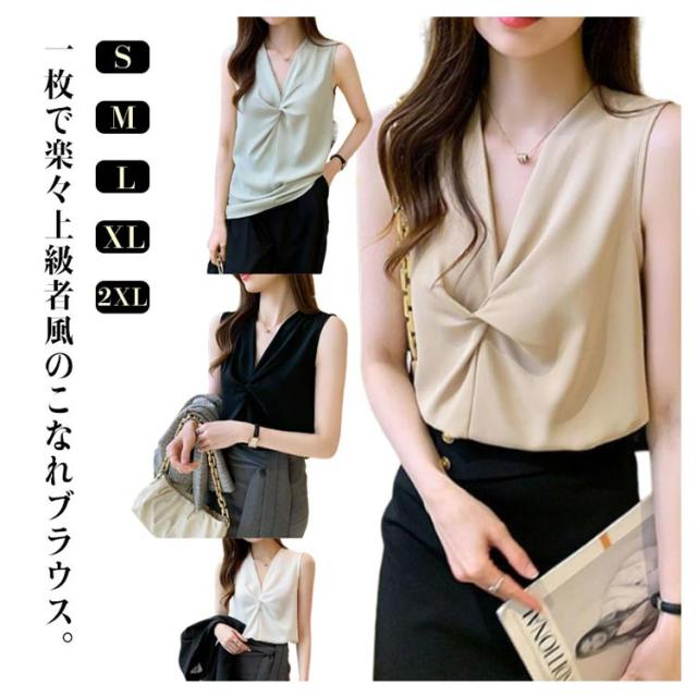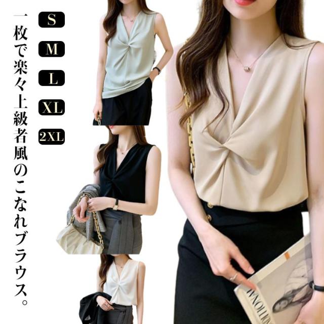 トップス シフォン 無地 フリル シャツブラウス レディース Vネック リボン 胸 シフォンブラウス 夏 ホワイト きれいめ シャツブラウス ブラック ベージュ ノースリーブ 韓国ファッション カットソー レディース スーツ インナー