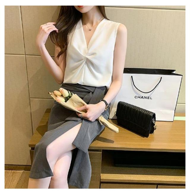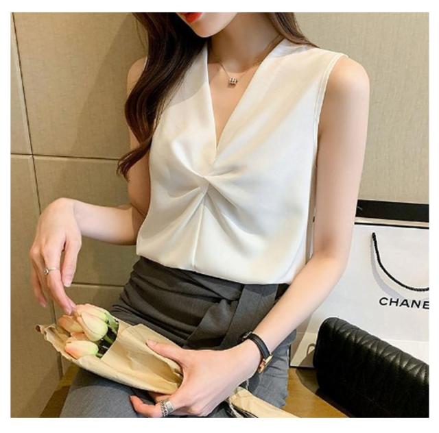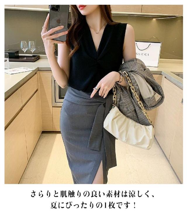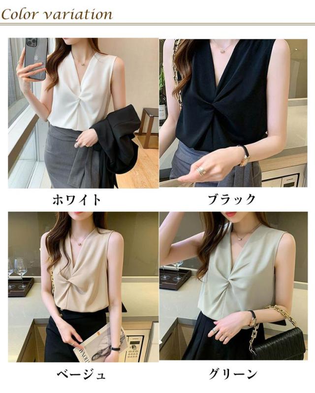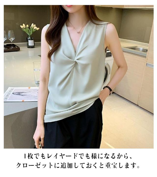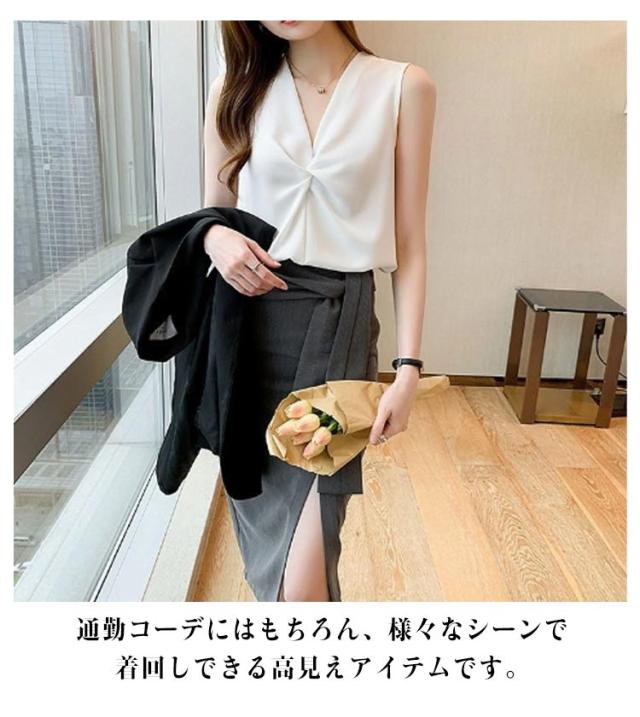 | 一枚で楽々上級者風のこなれブラウス。 さらりと肌触りの良い素材は涼しく、夏にぴったりの1枚です! Vネックとシフォン生地が春夏の軽やかさを出しつつ、程よい透け感でさり気ないぬけ感を演出してくれます。 ノースリーブのデザインで腕を美しく見せます。 1枚でもレイヤードでも様になるから、クローゼットに追加しておくと重宝します。 通勤コーデにはもちろん、様々なシーンで着回しできる高見えアイテムです。 | |