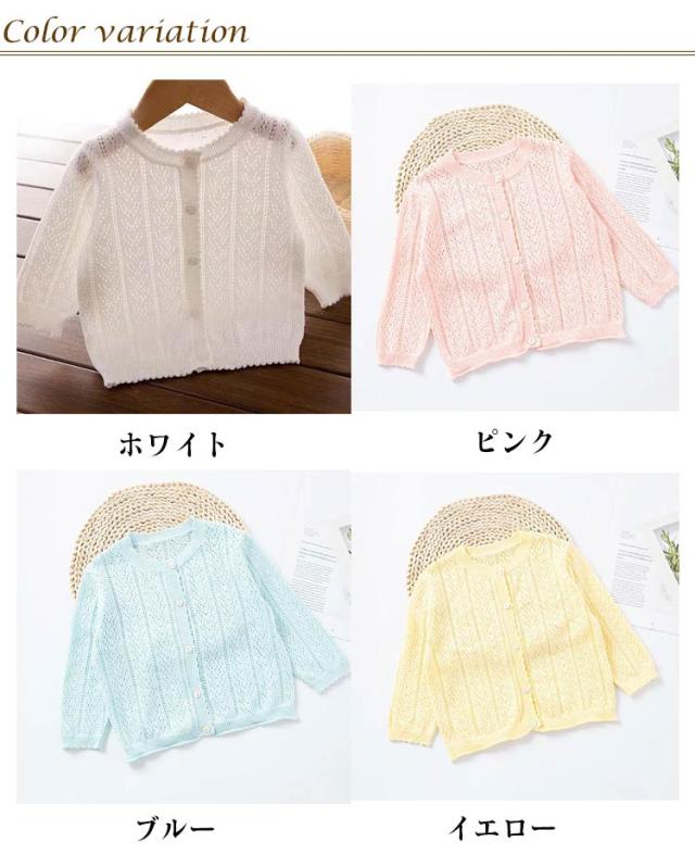ブルー サマーカーディガン UV対策 春 UVカット 女の子 冷房対策 紫外線カット 秋 夏 100 薄手 ベビー 冷感 羽織り 薄手 長袖 UVカット 子供服 ホワイト ピンク イエロー 90 キッズ 110 120 130 140