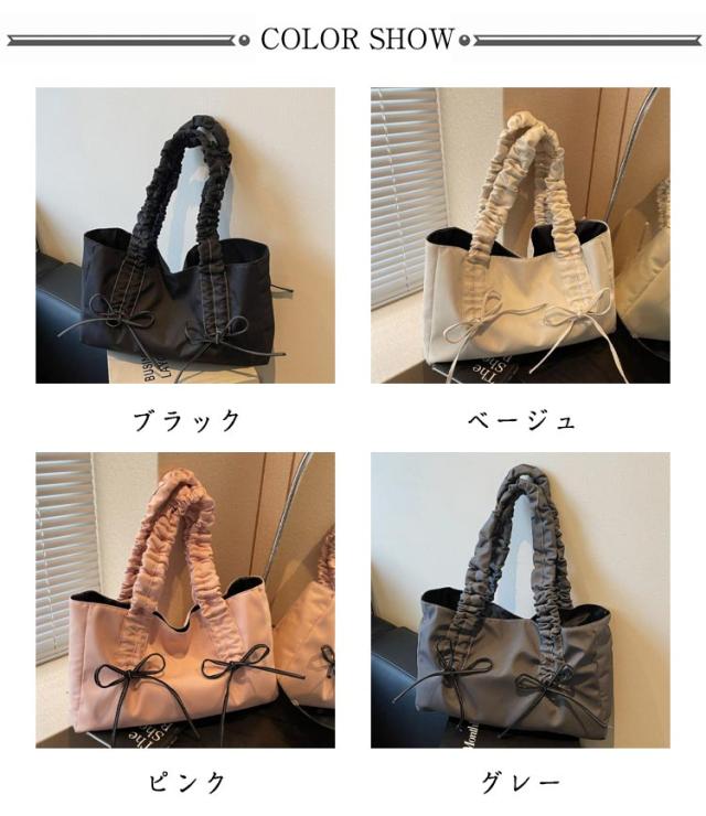 フリルハンドル A4 バッグ 大きめ マチあり ハンドバッグ 鞄 トートバッグ バッグ リボン フリル かばん ギャザーバッグ スクエア レディース トートバッグ 通学 きれいめ 大人 可愛い おしゃれ 肩掛け 肩がけ 無地 ブラック ベージュ ピンク