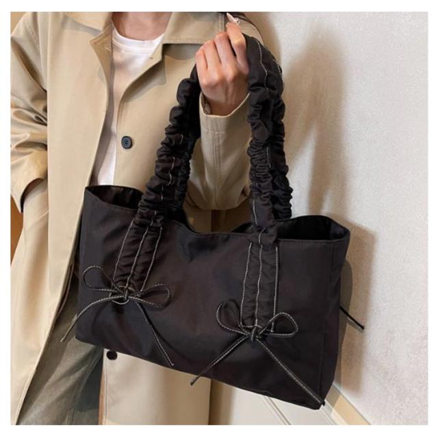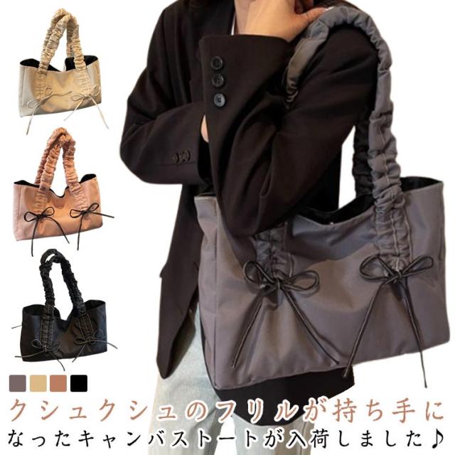 バッグ トートバッグ かばん 大きめ トートバッグ 可愛い レディース ハンドバッグ フリルハンドル スクエア バッグ リボン ギャザーバッグ フリル マチあり A4 肩がけ きれいめ 大人 通学 おしゃれ 肩掛け フリルハンドル 無地 ブラック ベージュ ピンク