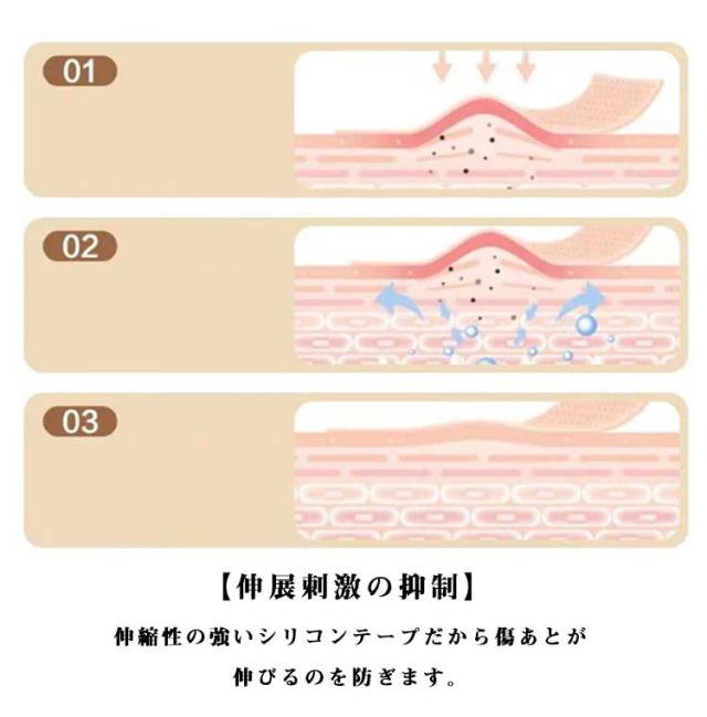 | 【傷あとケアテープ】 4cm×300cm 7.5cm×150cm 【手術後の傷あとをしっかりキレイに守る】肌にやさしいシリコンテープ採用 【伸展刺激の抑制】伸縮性の強いシリコンテープだから傷あとが伸びるのを防ぎます。 【摩擦刺激の軽減】衣類や下着のこすれから傷あとを守ります。 【紫外線予防】デリケートな傷あとを紫外線から守ります。 【水分から守る】水分を防ぐことで傷あとをきれいに守ります。 | |