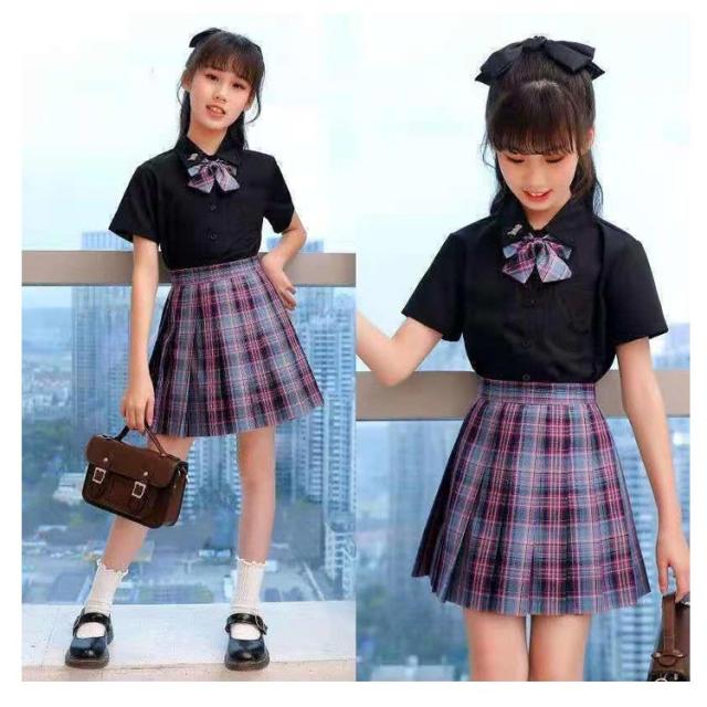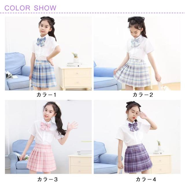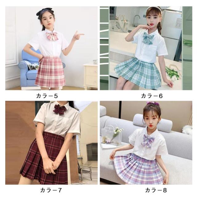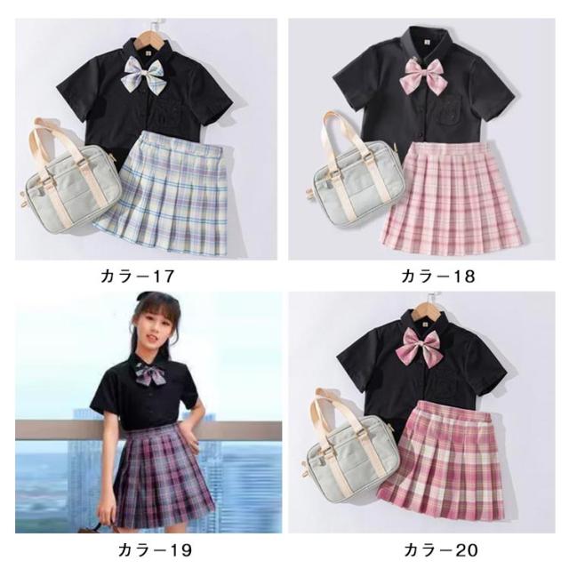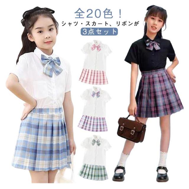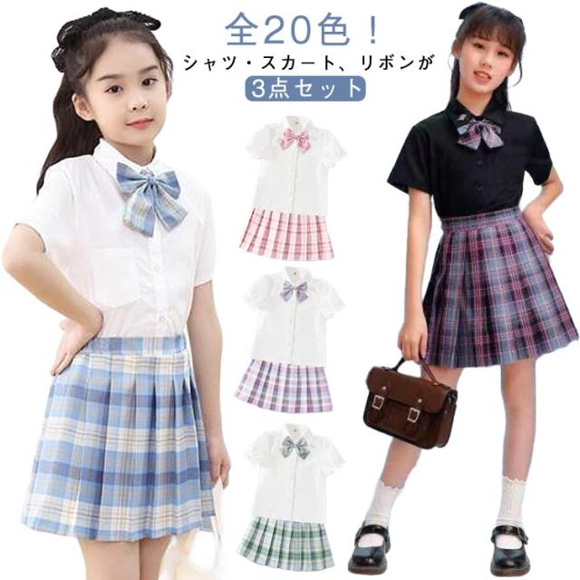 学生服 卒業式 スクール かわいい 子供 ポケット付き 3点セット 半袖 キッズ チェック柄 リボン 制服 シャツ スーツ JK制服 仮装 小学生 プリーツスカート 卒園式 子供 コスプレ衣装 中学生 おしゃれ 春夏 110 120 130 140 150 160