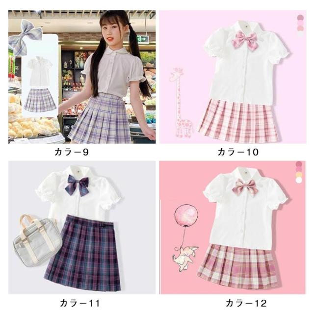 | 全20色!シャツ・スカート、リボンが3点セット しっかりした生地と柔らかな肌触りで着心地が抜群♪ チェック柄のリボンが印象的で、着こなしのお洒落なアクセントとなります☆ コスプレ、入学式、卒業式、文化祭、撮影、普段着などにおススメ。 | |